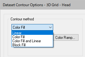 をクリックして、ダイアログを開きます。Contour method欄でドロップダウンリストから「Color Fill」を選択します。OKをクリックします。