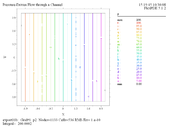 今度は圧力によって流れが生ずるケースについて考察することにします。チャネルの形状はCase1の場合と同一ですが、入口側の圧力を