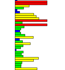パーセンテージログは棒ログと似ていますが、各深度/間隔での値の合計を100%で正規化して表示します。変質タイプ、化学タイプ、岩石タイプ(砂、泥、礫、シルトなど)などの割合を表示するのに利用できます。