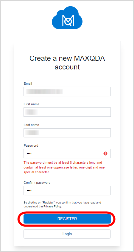 teamcloud@maxqda.comからのメール受信を許可してください。