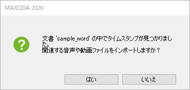 が生成されます。タイムスタンプをダブルクリックすると、マルチメディアブラウザーが開き、音声・動画データがタイムスタンプに対応する時間から再生されます。