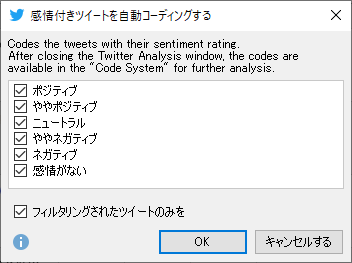 分析したツイートはツイートタイプや感情のスコアでフィルタリングできます。画面左側のチェックボックスにチェックを入れて表示するツイートをフィルタリングしましょう。
