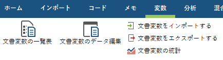 編集または変数タブの文書変数のデータ編集をクリックすると、各文書の変数値が一覧表示されます。