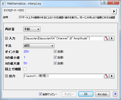 また、Originでは、データセットに対して補間または補外を実行した後、任意のXに対するY値を検索できる機能も利用可能です(解析:数学:補間/補外(XからYを検索))。