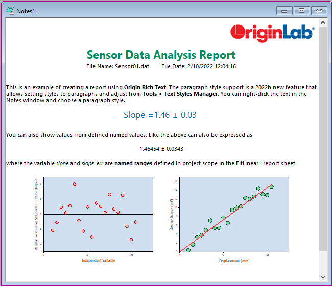 ノートウィンドウでOriginリッチテキストシンタックスをサポートし、以下の機能を利用できます。