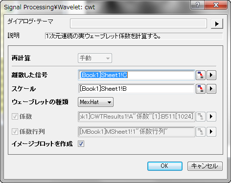OriginProの連続ウェーブレット変換(CWT)ツールで、1次元の実信号または複素信号のウェーブレット係数を計算できます。この機能には3つのタイプのウェーブレット関数があります。Morlet、Mexican Hat 、Gaussianウェーブレットの派生です。