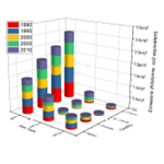 OriginProには100以上のグラフタイプが用意されており、そのいずれも自由に編集して、お望みのグラフを作成できます。OriginLabのグラフギャラリーには、こちらのページにあるグラフのほかに、実際のOriginProユーザが作った多種多様なグラフのサンプルがあります。実際のデータをダウンロードして、自身のデータで同様のグラフを作成することもできます。