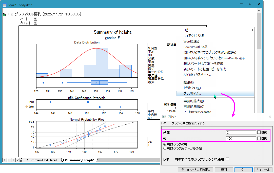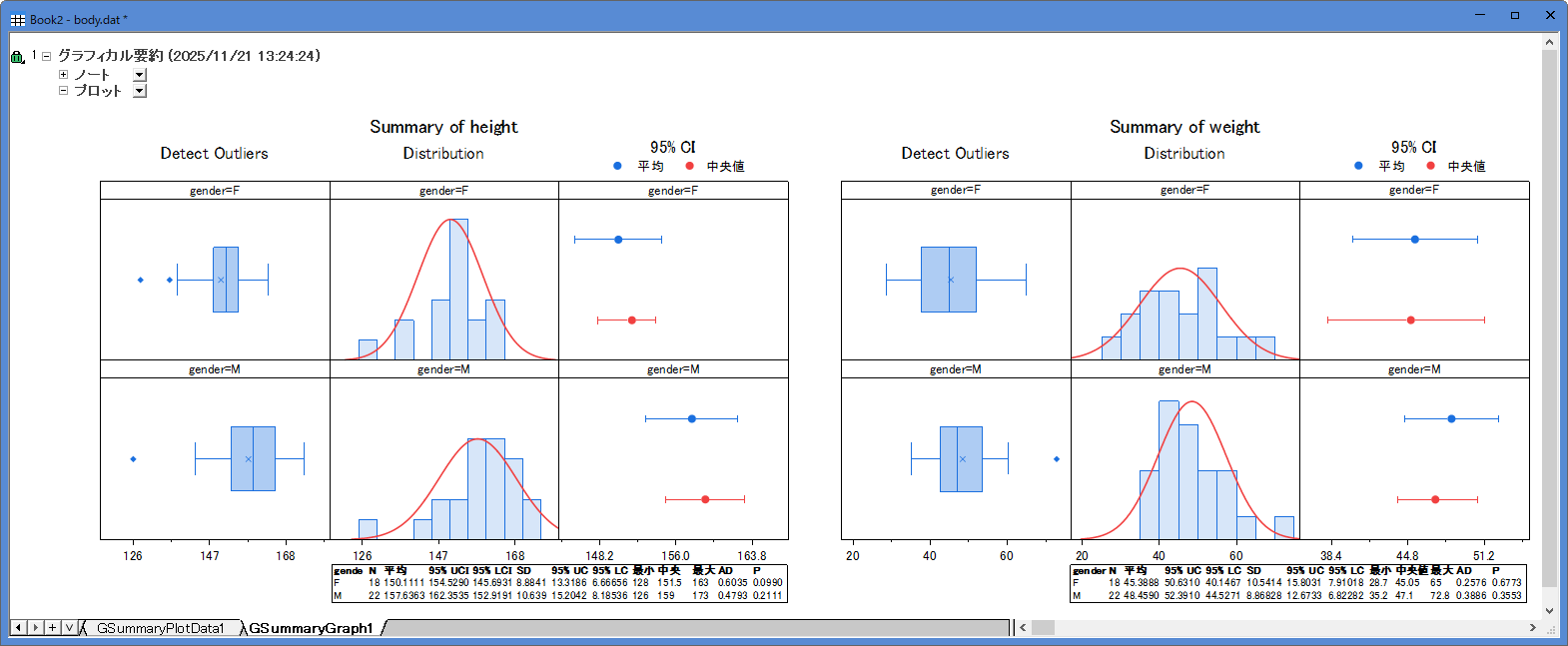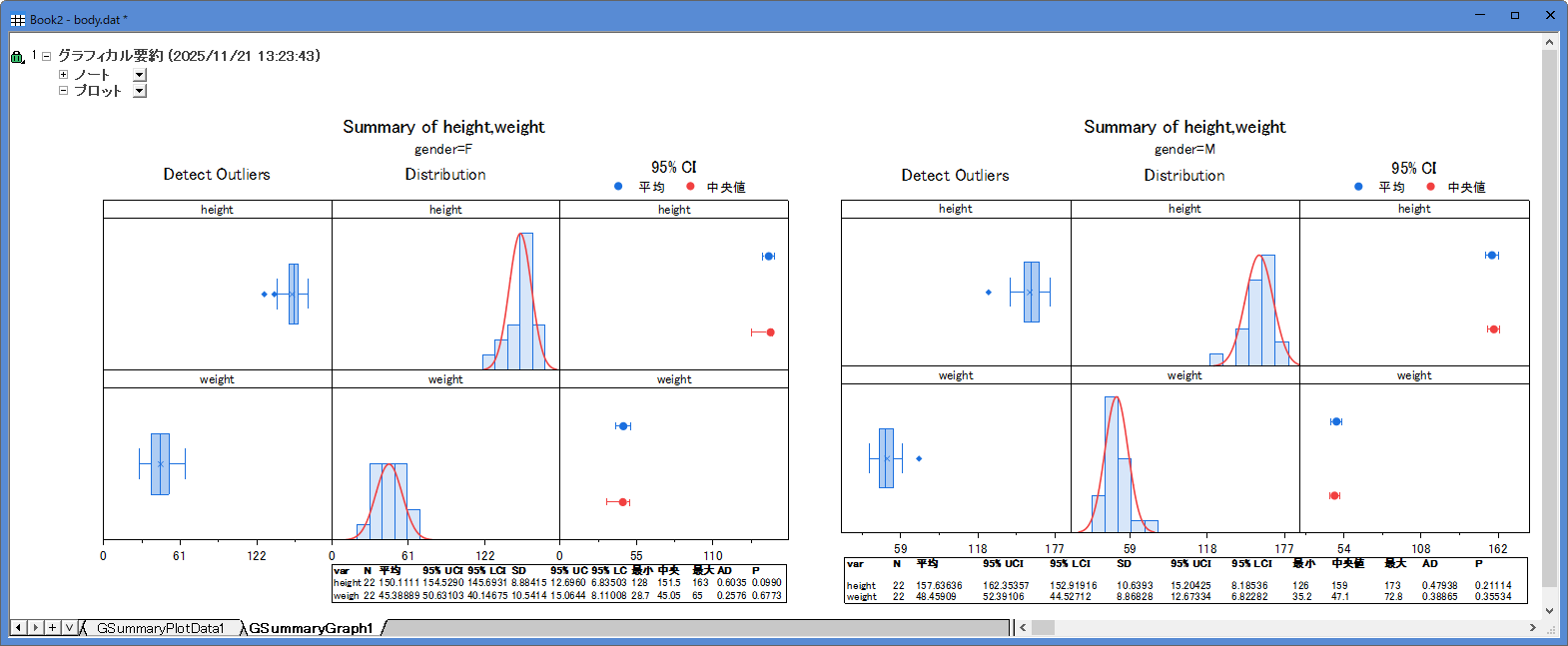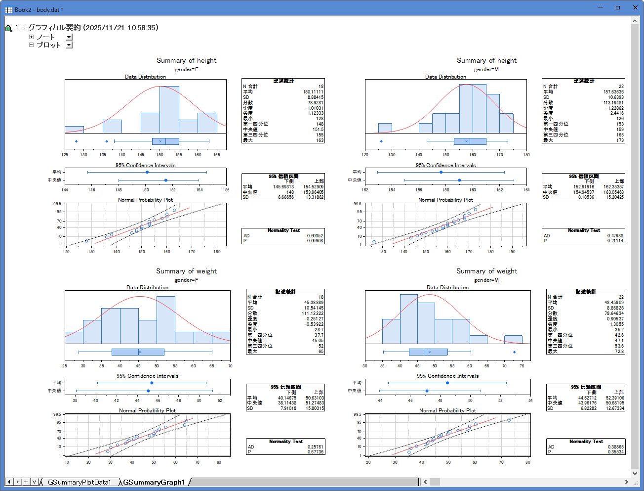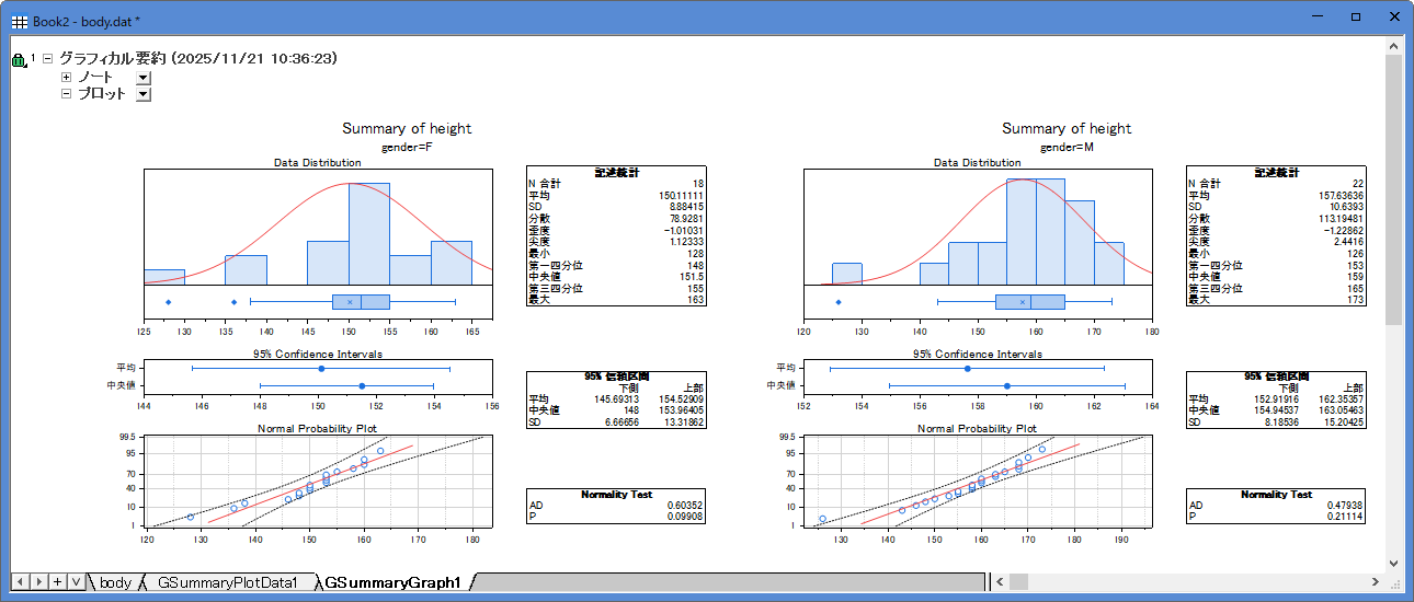 | 基本統計量 (Basic Statistics) | データセットの総数(N)、平均、標準偏差、最小値、最大値などの基本的な統計量を表示します。 |