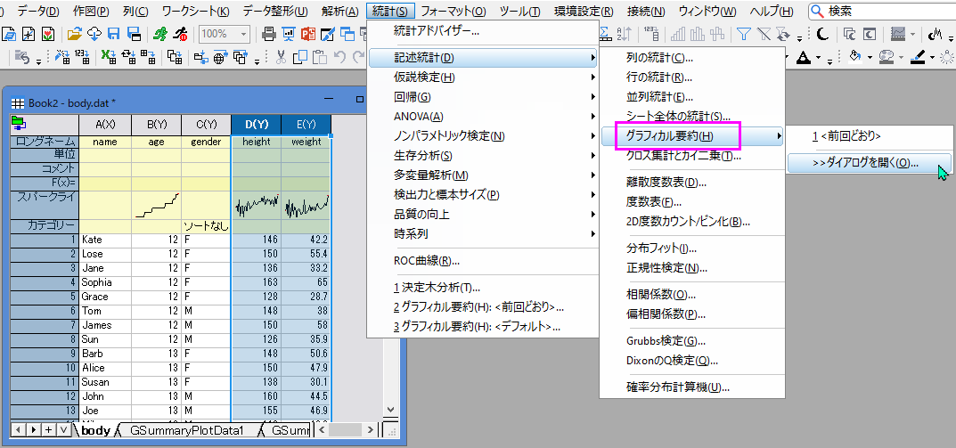 グラフィカル要約機能を使用するためには、Origin/Pro 2026以降のバージョンが必要です。それ以前のバージョンをお使いの方は体験版にて実際にお試しいただけます。