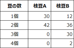 実際の集計データである右の表で確認すると、やはり枝豆Bの方がばらついていますね。